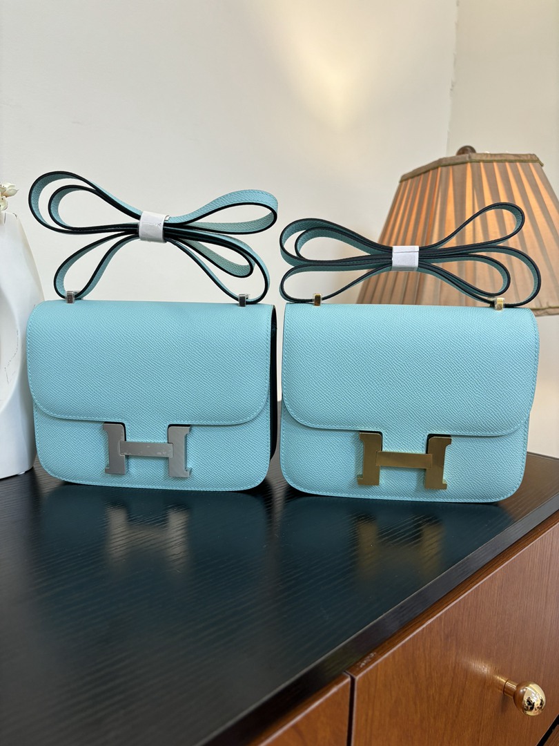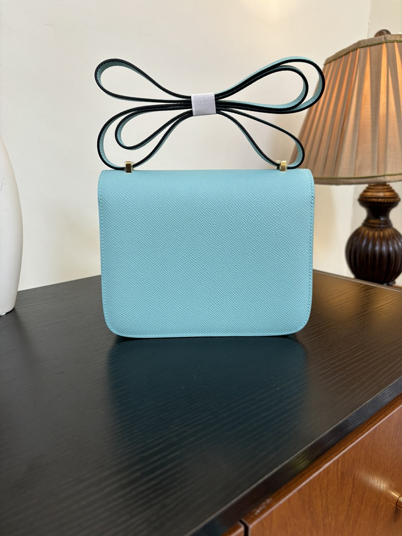 Hermes Constance Mini 18 Epson Shoulder Blue Atoll