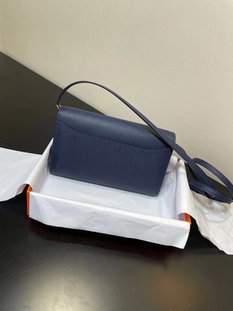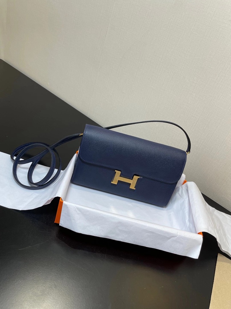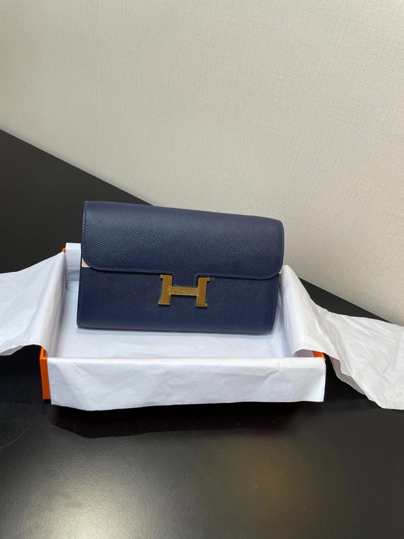 Hermes Constance Epsom Long To Go Wallet Blue Saphir Golden Hardware