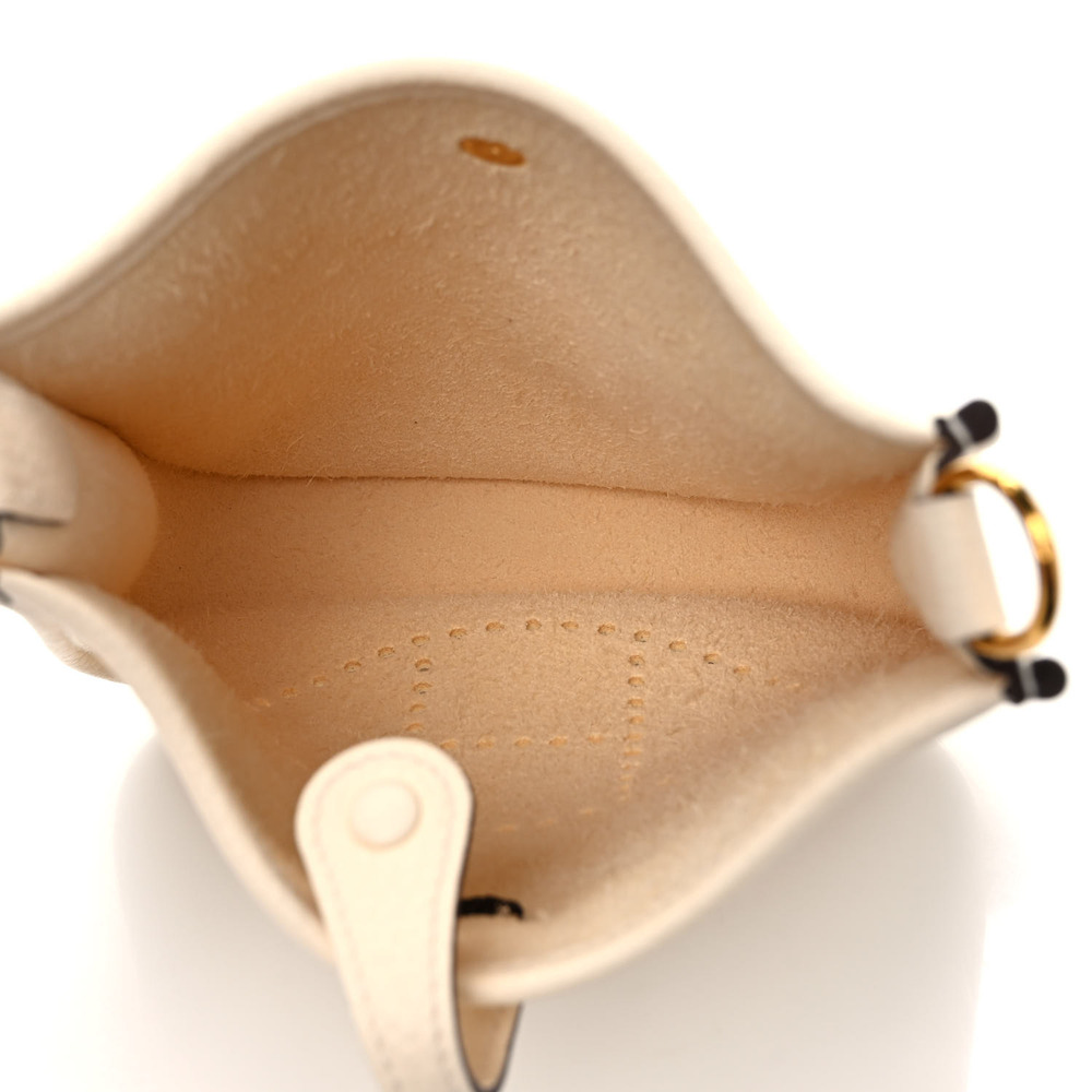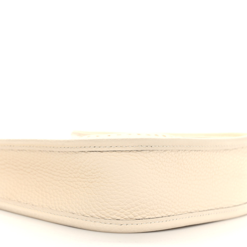 This Evelyne is in Vert Cypress Clemence leather with palladium hardware, has tonal stitching, pull tab top closure and a multicolored removable canvas and leather shoulder/crossbody strap.