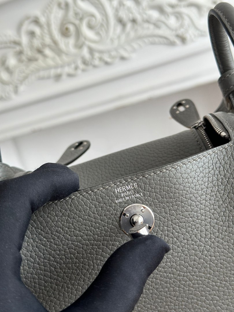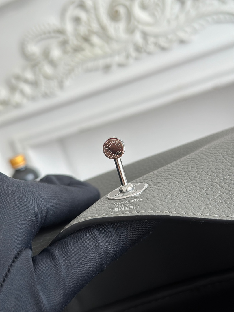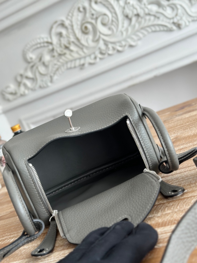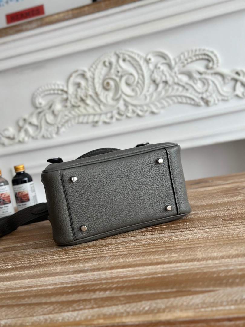 Hermes Mini Lindy Taurillon Clemence 19 Gris Meyer