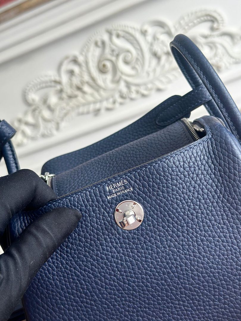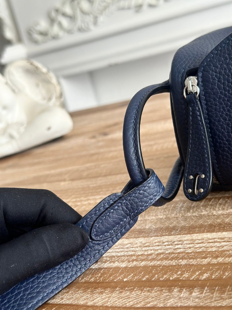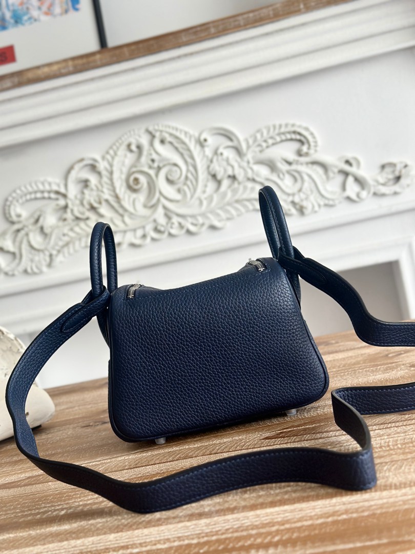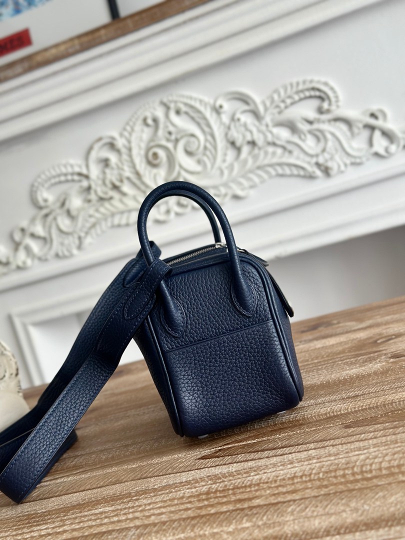 Hermes Mini Lindy Taurillon Clemence 19 Blue Saphir