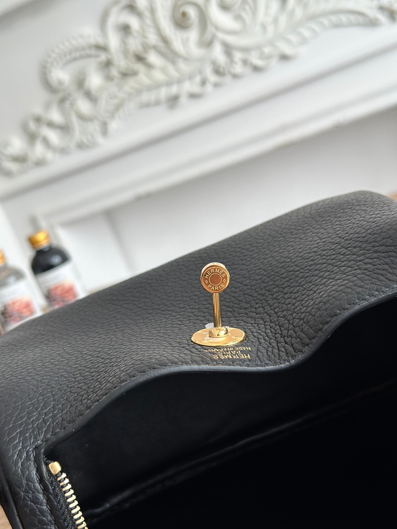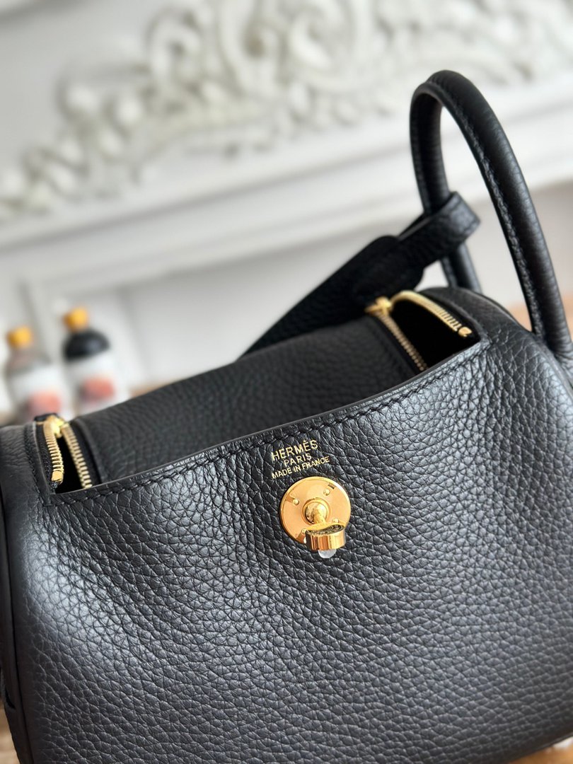 Hermes Mini Lindy Taurillon Clemence 19 Noir