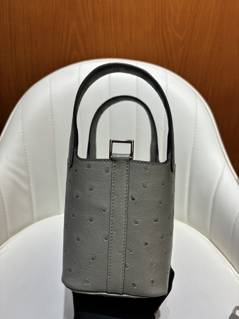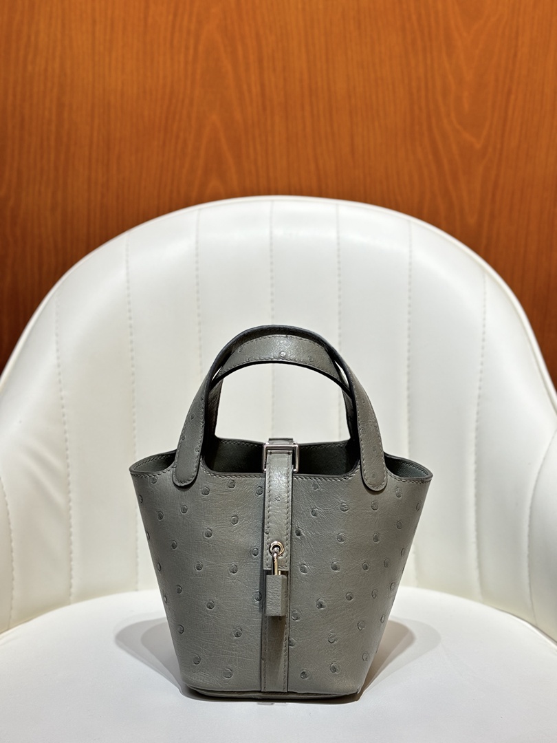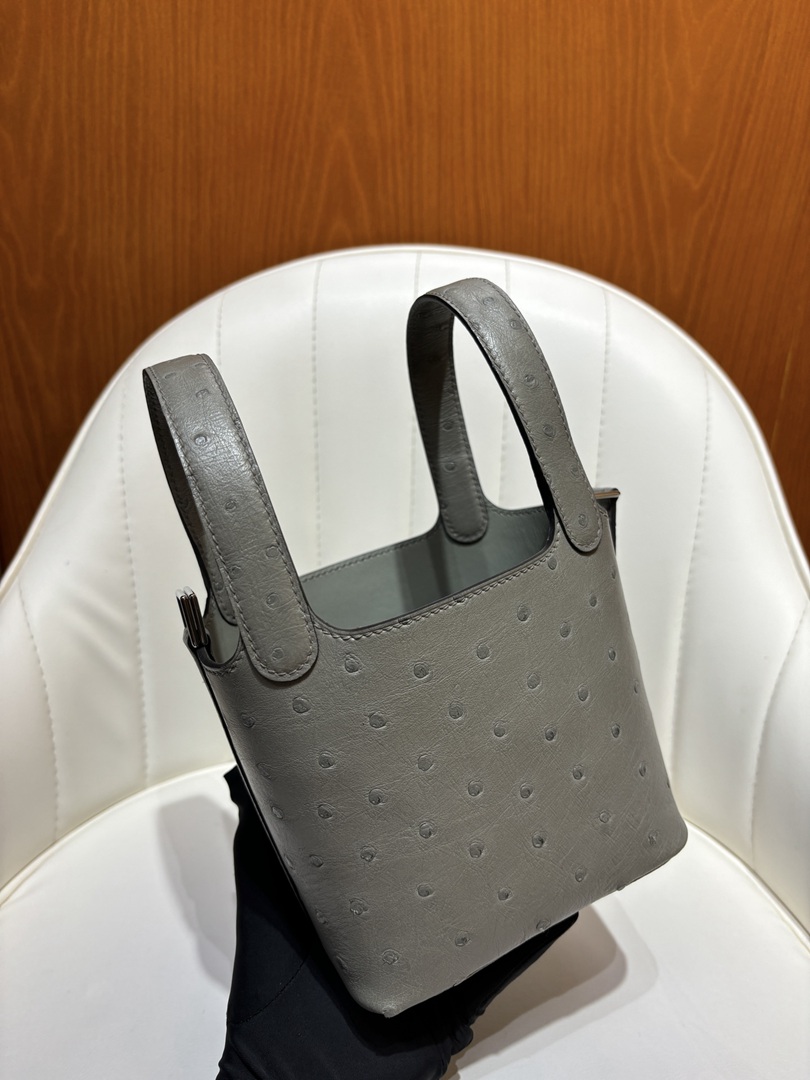 Hermes Ostrich Picotin Lock 22 Gris Mouette