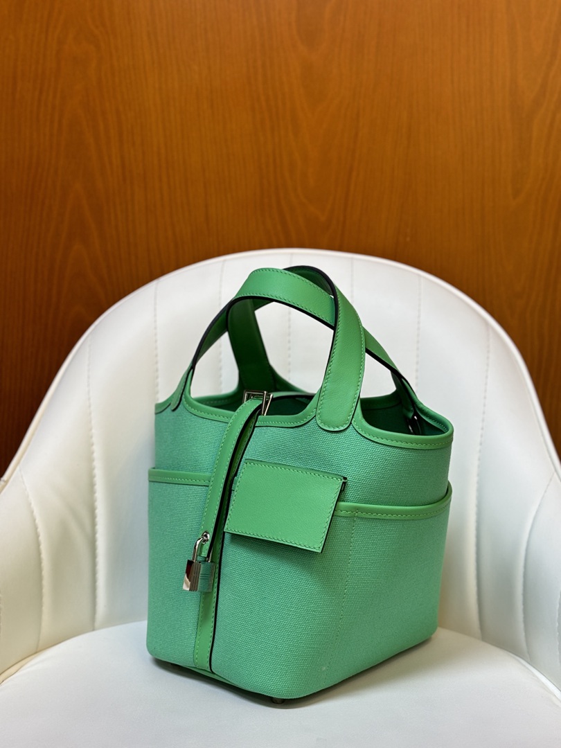 Hermes Cargo Picotin Toile Goeland Swift Picotin Lock 18 Vert Fizz and Vert Comics