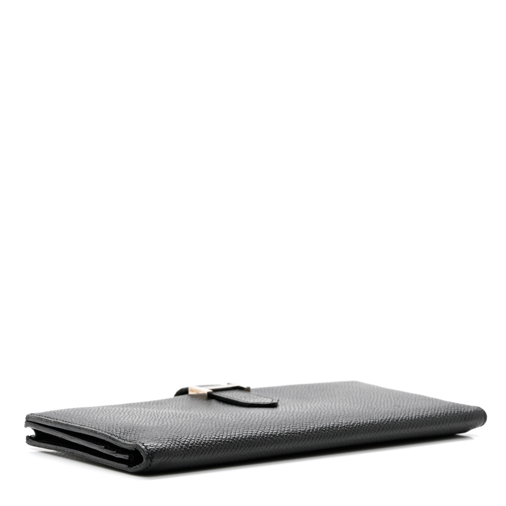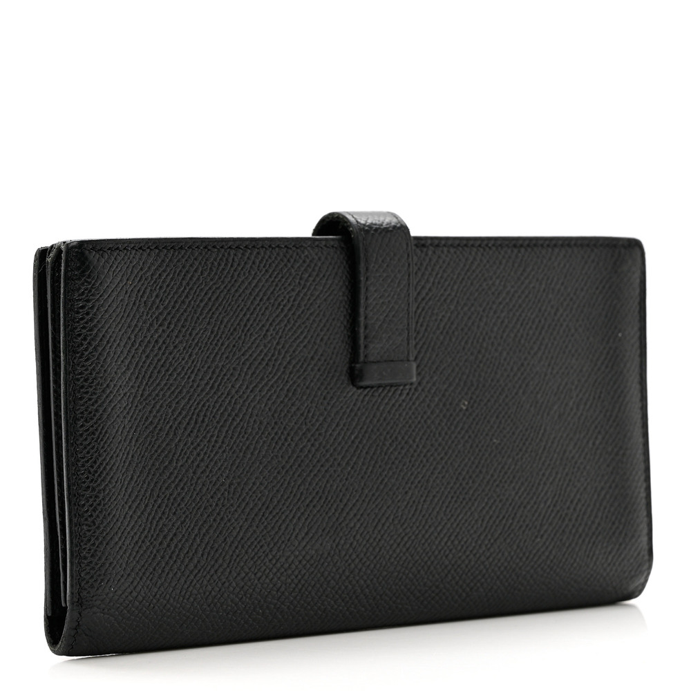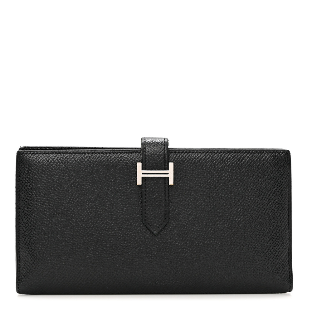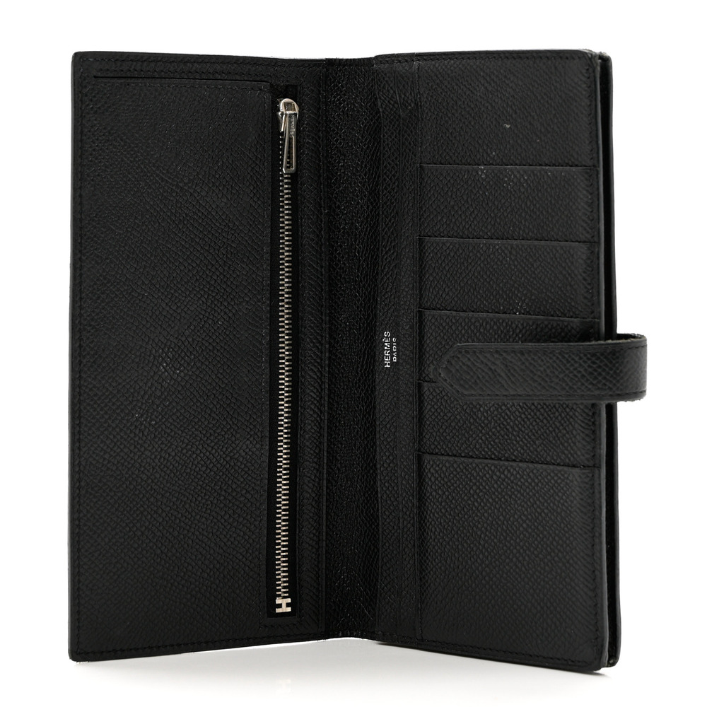 Crafted from epsom cross-grain calfskin leather, this chic wallet exudes sophistication and luxury. It features a crossover strap with a palladium H buckle, adding a touch of elegance. Opening the wallet reveals a matching leather interior with card slots, flat pockets, and a zippered coin compartment for organized storage of your essentials.