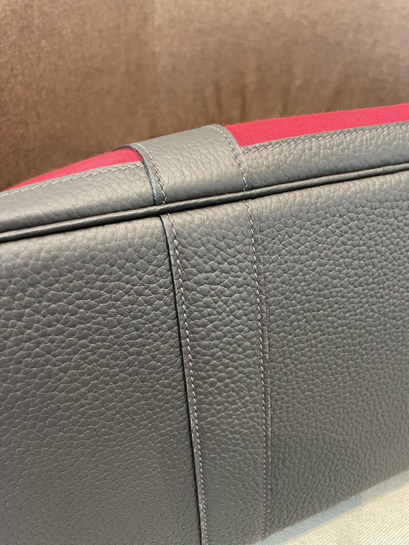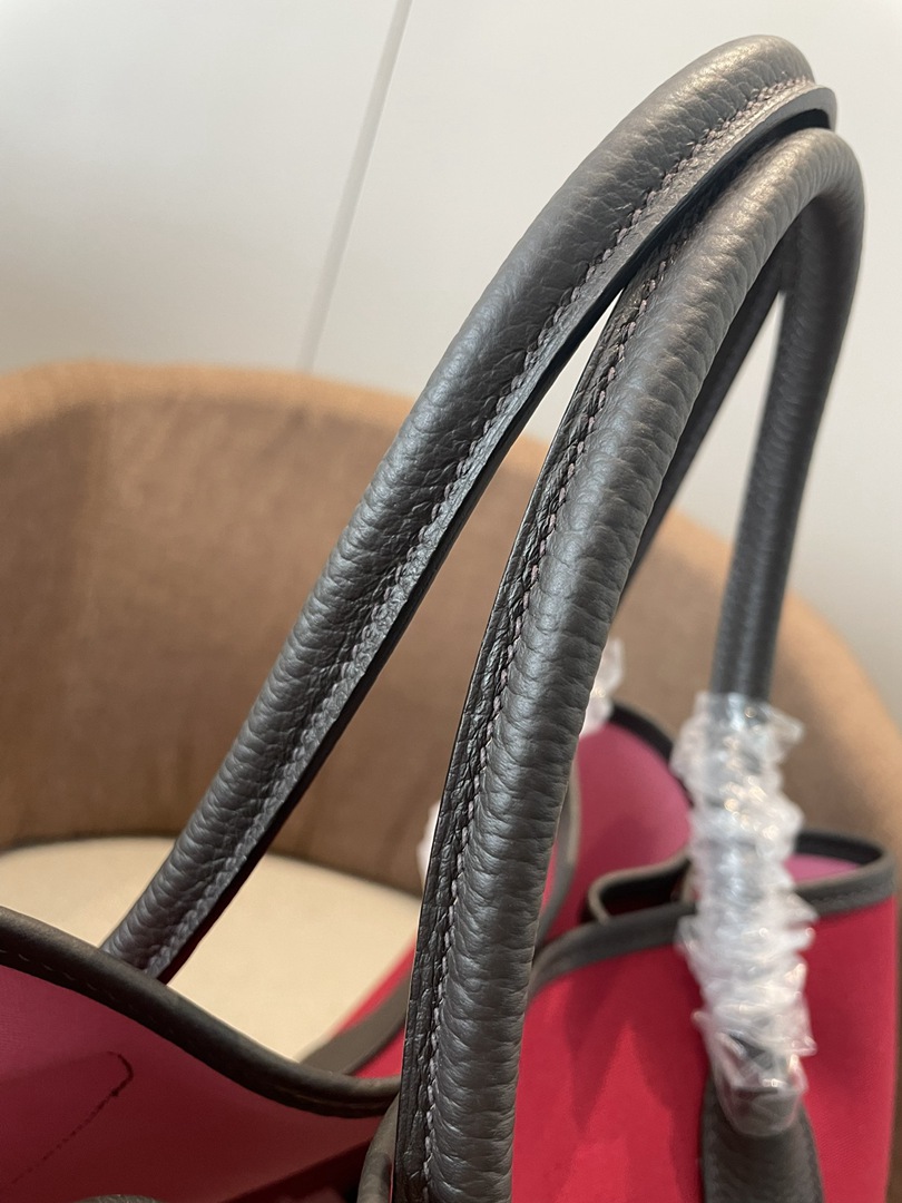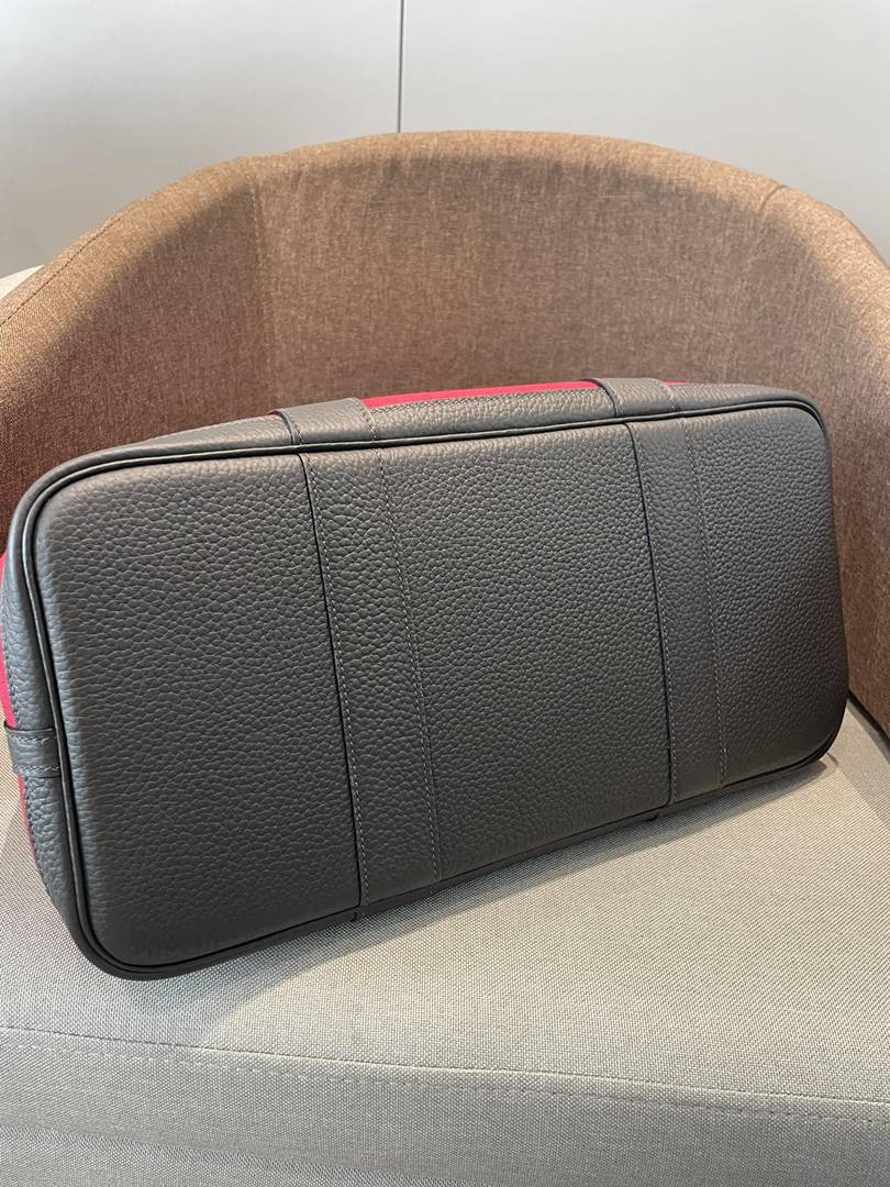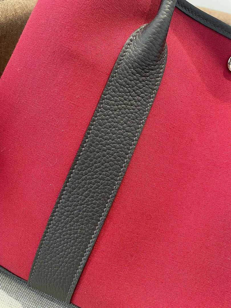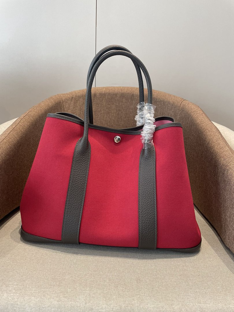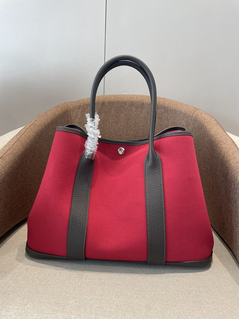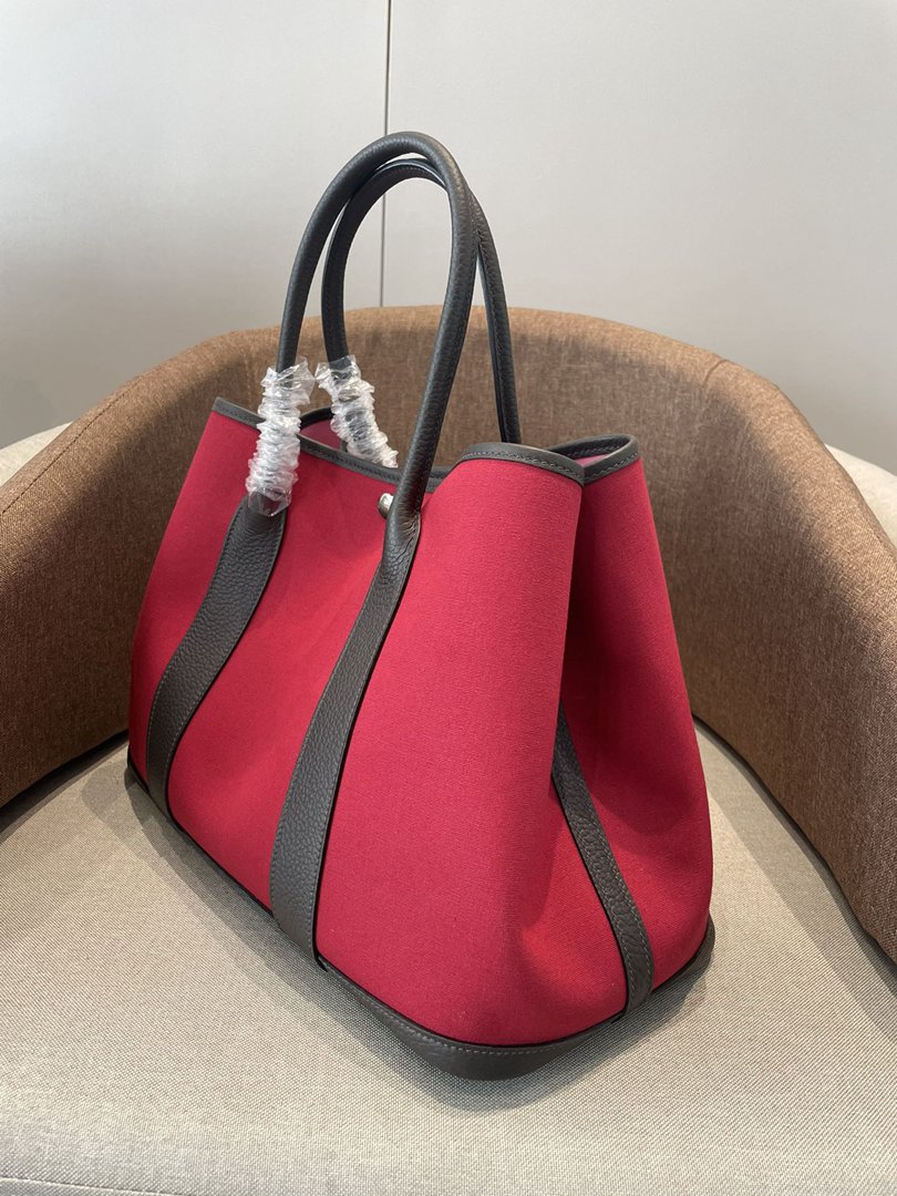 Hermes Garden Party 30 TPM Bicolor Toile Officier Negonda Tote Rouge Grenat and Black