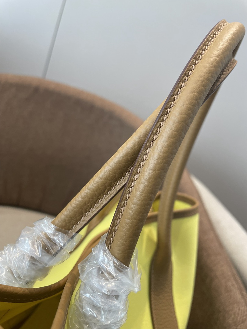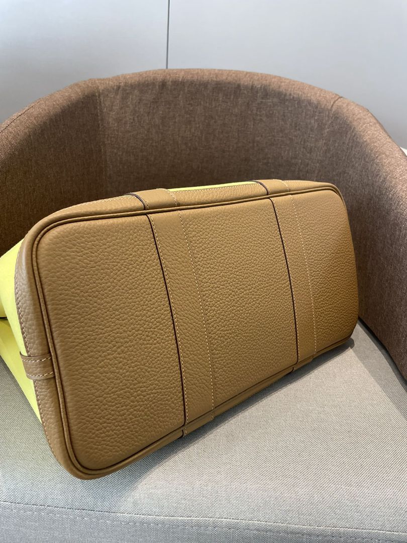 Hermes Garden Party 30 TPM Bicolor Toile Officier Negonda Tote Jaune Citron and Chevre Gold