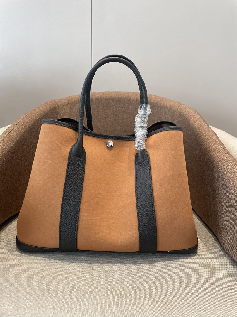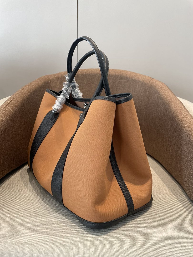 Hermes Garden Party 30 TPM Bicolor Toile Officier Negonda Tote Camel and Trenchown