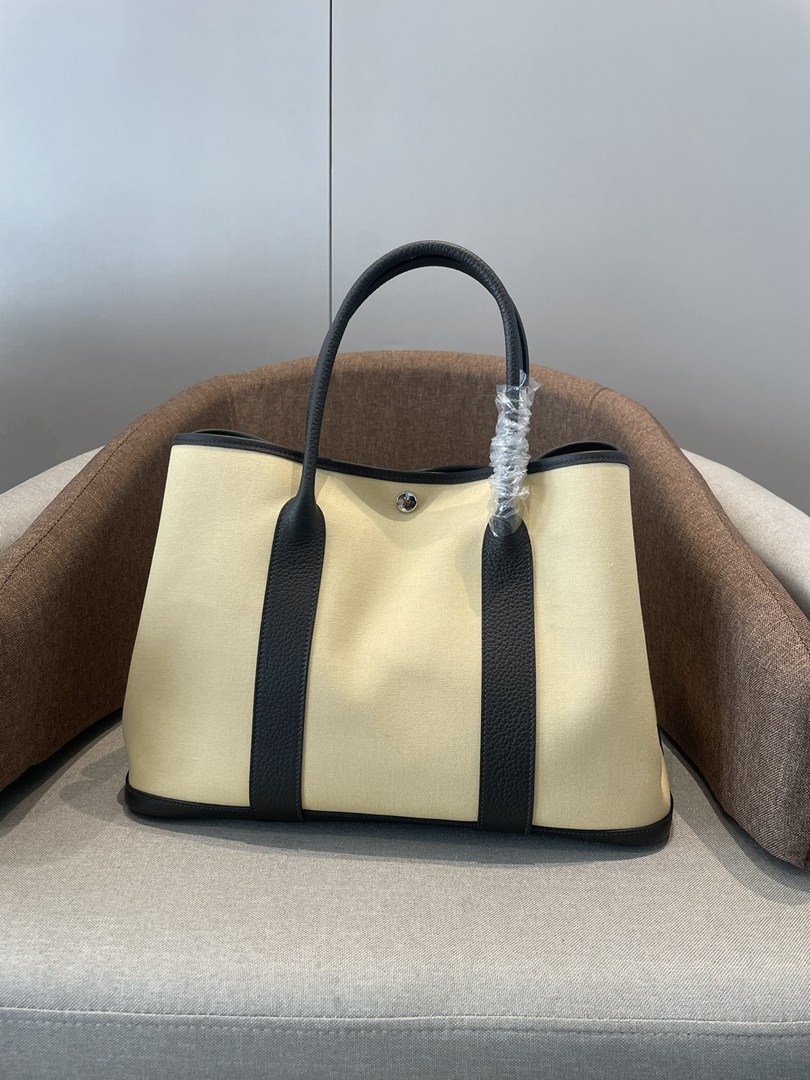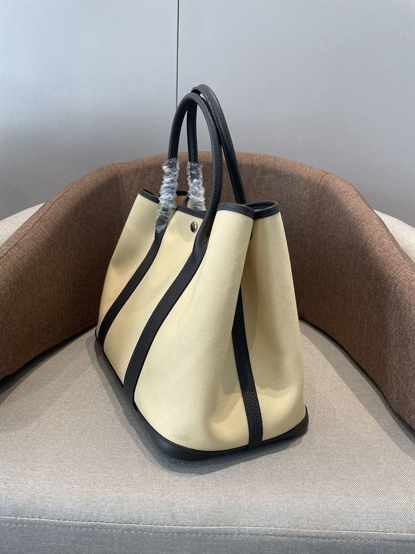 Hermes Garden Party 30 TPM Bicolor Toile Officier Negonda Tote Jaune Poussin and Black