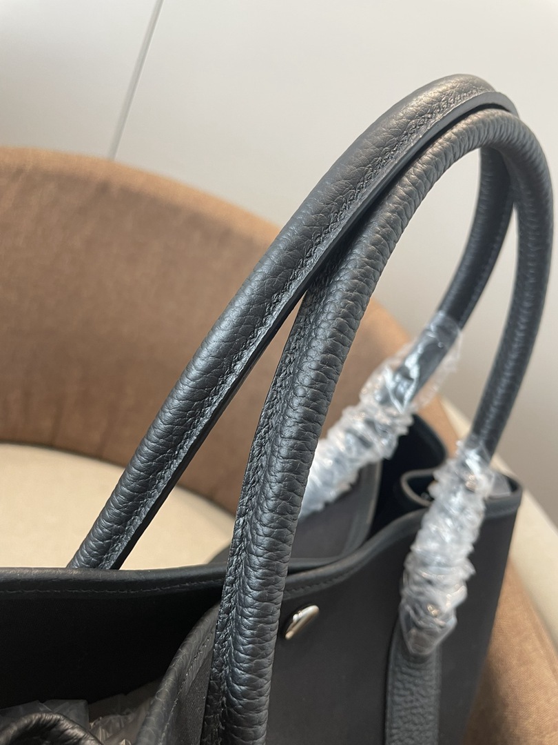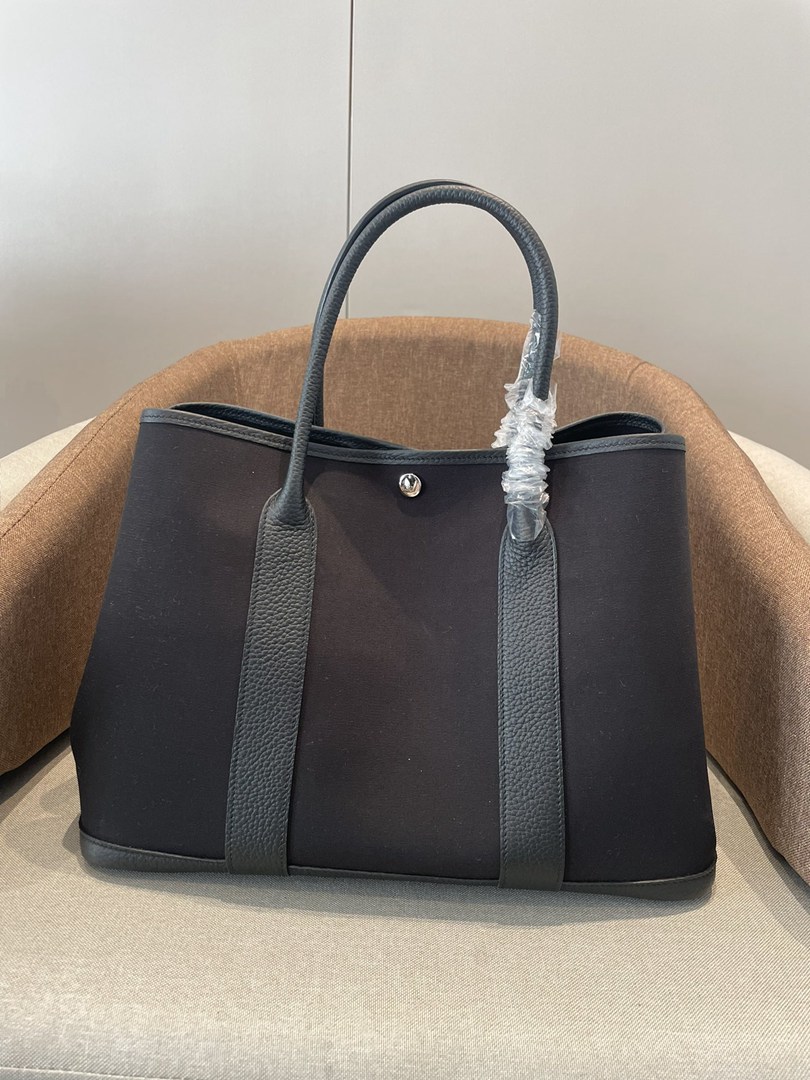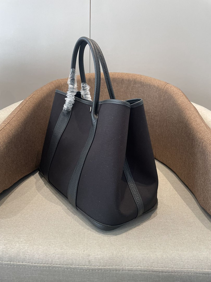 Hermes Garden Party 30 TPM Bicolor Toile Officier Negonda Tote Black