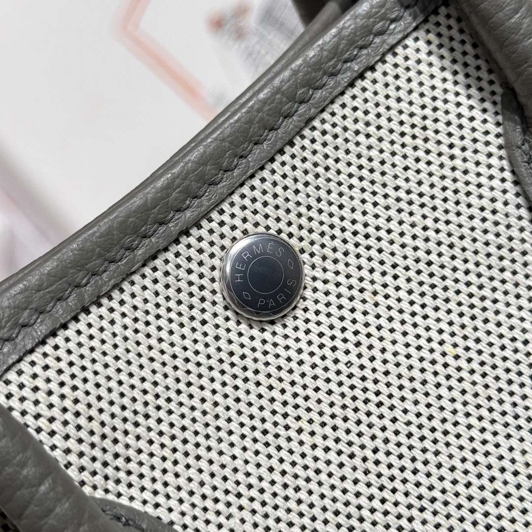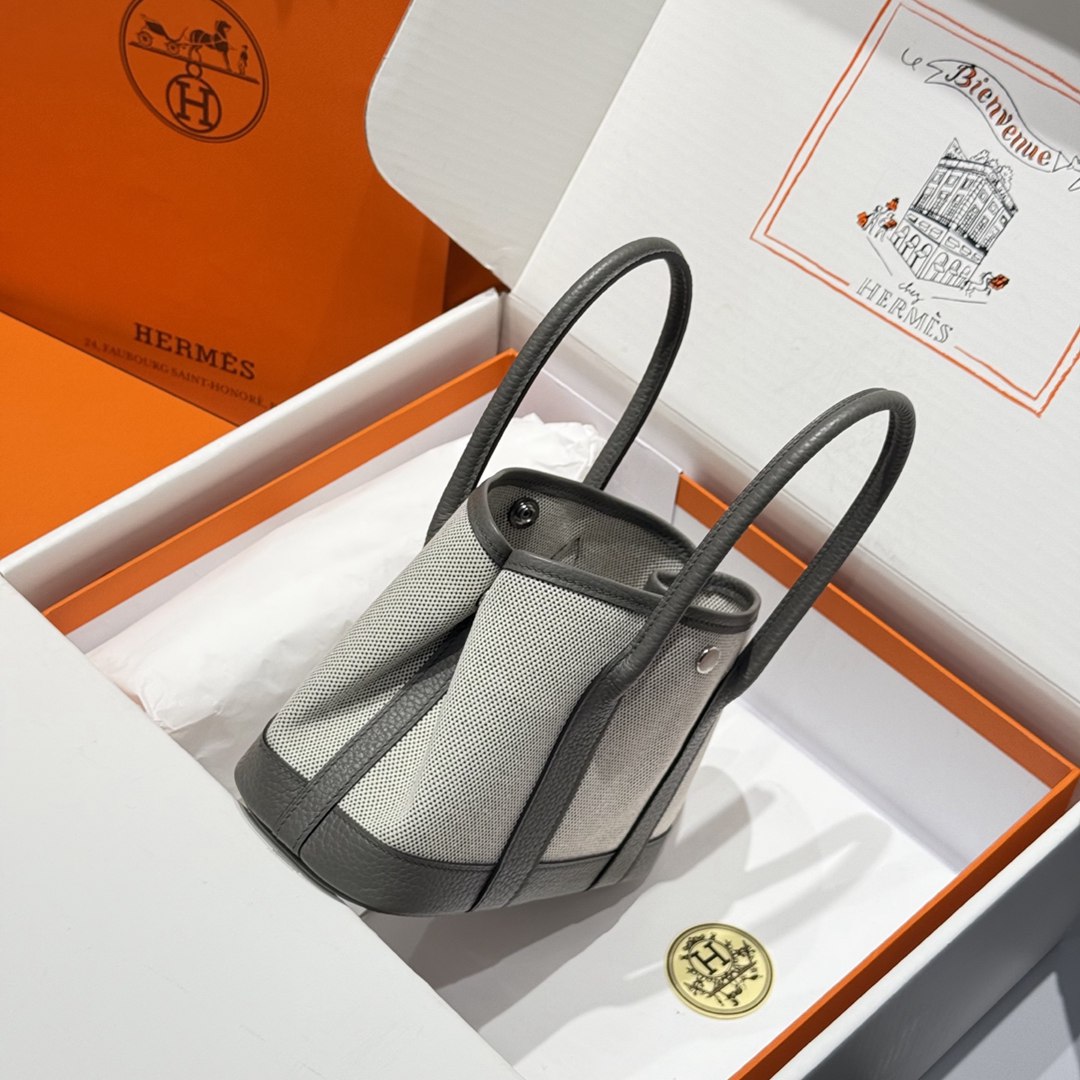 Hermes Garden Party MIni Bicolor Toile Officier Negonda Tote Craie and Gris Meyer