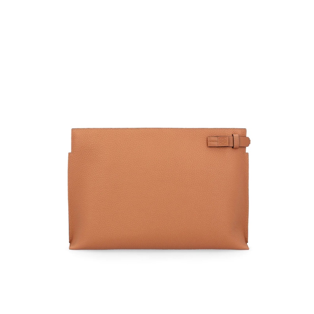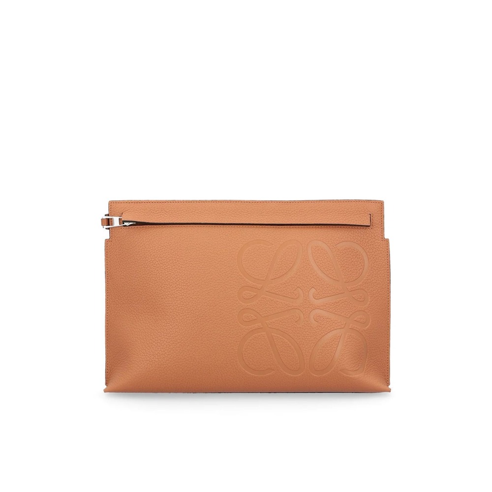 Functional zip front pouch with a distinctive T-bar profile that gives the bag its name and a debossed LOEWE Anagram patch. This version is crafted in satin calfskin.