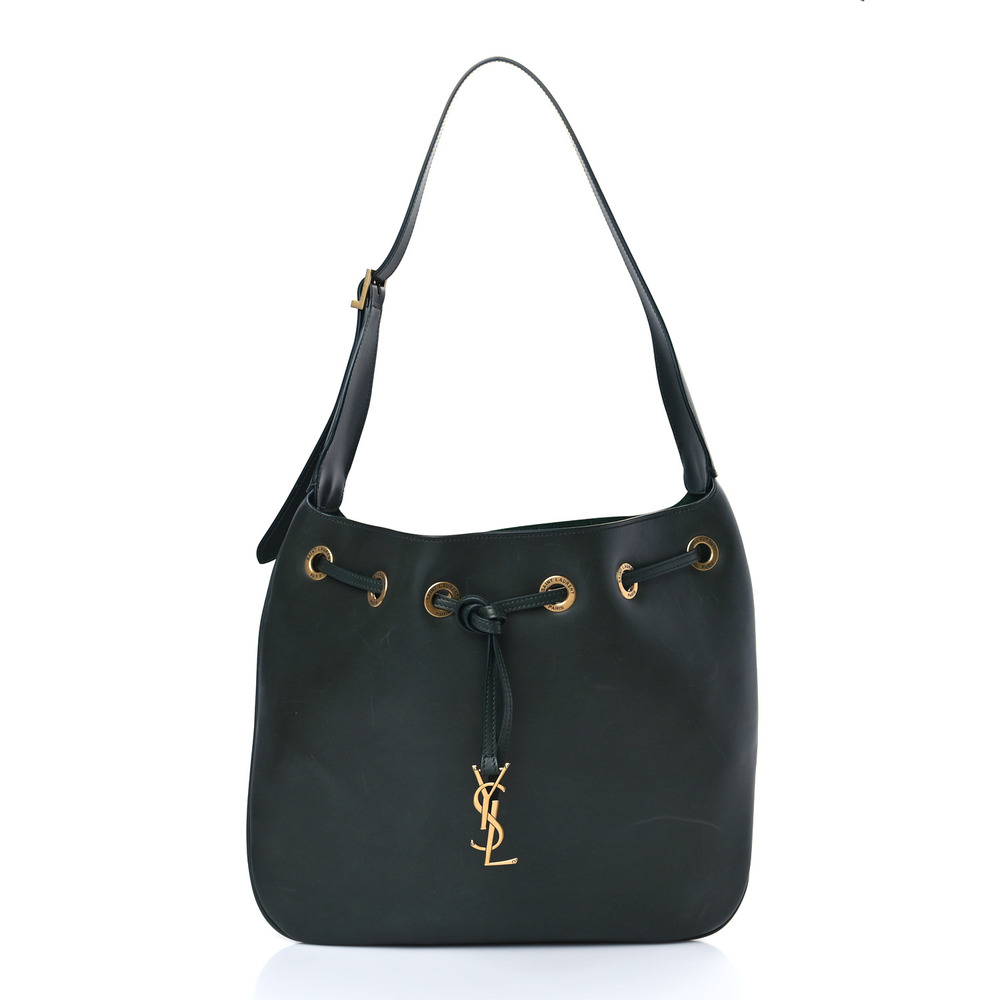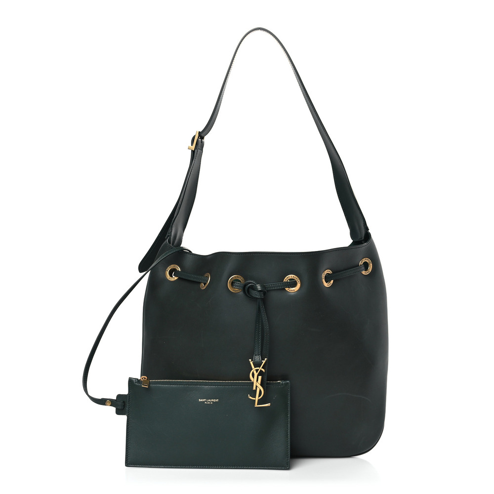 Saint Laurent Calfskin Paris VII Medium Flat Hobo New Vert Fonce