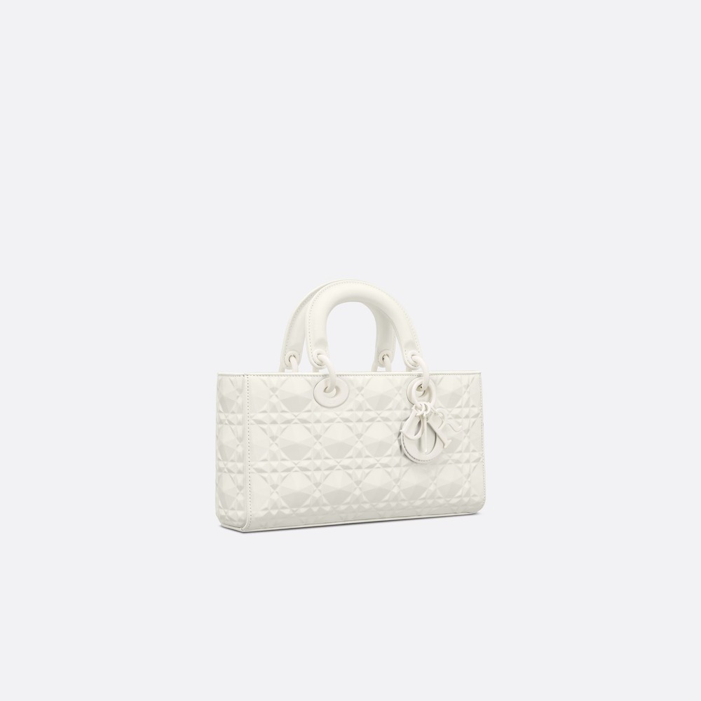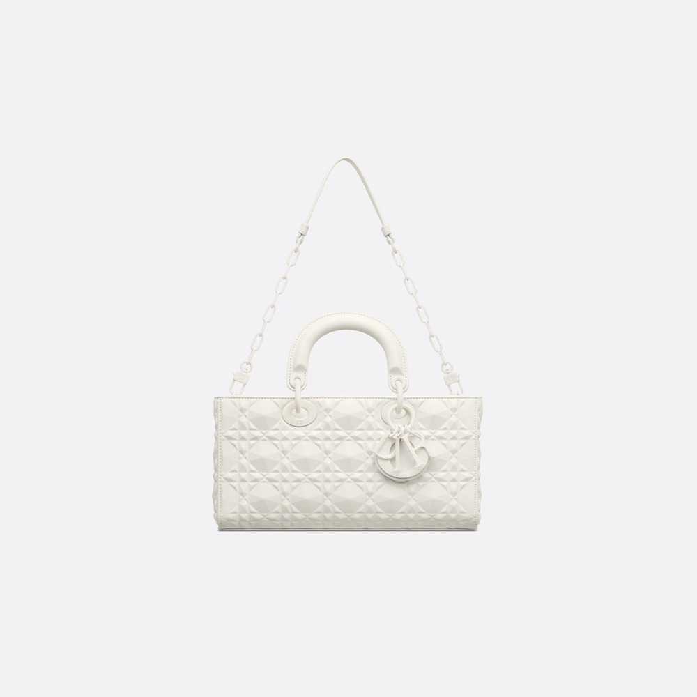 The Lady D-Joy bag captures the House’s vision of elegance and beauty by showcasing the iconic streamlined aesthetic of the Lady Dior line. Crafted in latte Cannage calfskin featuring a Diamond motif, the refined and timeless style is enhanced by tonal matte metal D.I.O.R. charms elegantly embellishing its silhouette. Equipped with one removable chain shoulder strap and another adjustable and removable leather shoulder strap, the medium Lady D-Joy bag can be carried by hand, worn over the shoulder or crossbody as a daily companion.