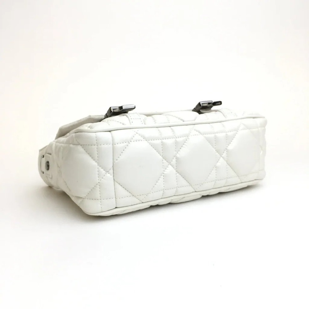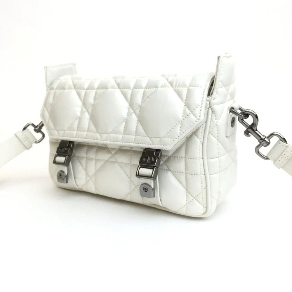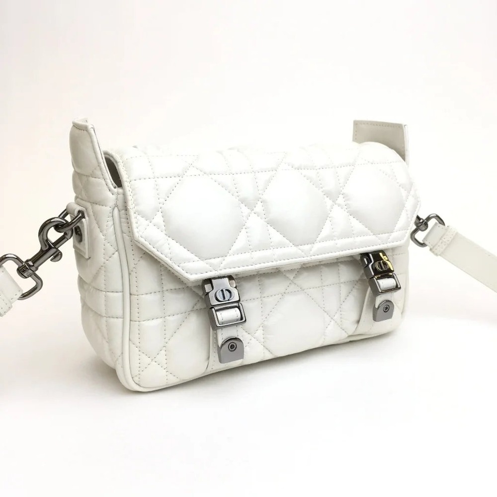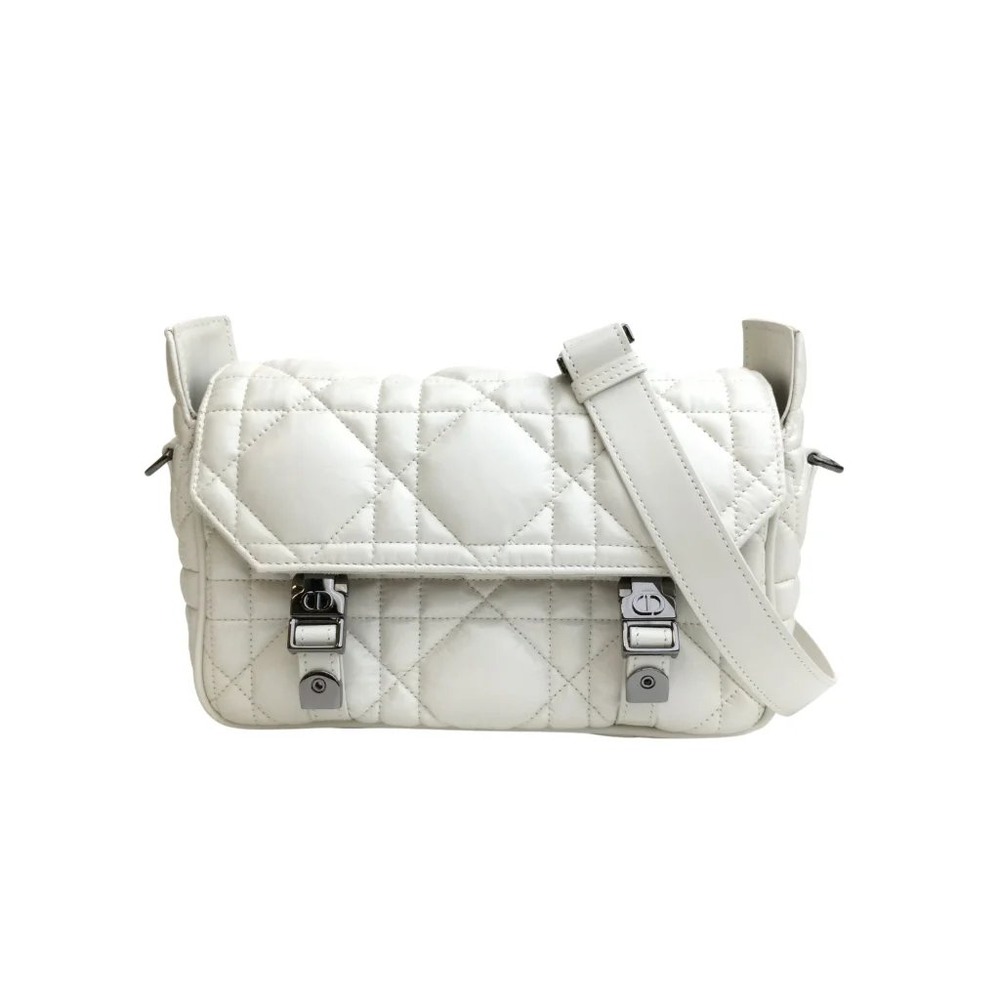 Maria Grazia Chiuri has updated the classic messenger bag by adding signature Dior details for a relaxed and modern look. Crafted in latte calfskin, the bag stands out with its unique quilted-effect Macrocannage stitching. A flap and sportswear-inspired ‘CD’ buckles in ruthenium-finish metal complete the small design. Equipped with an adjustable and removable shoulder strap, the compact messenger bag can be worn over the shoulder or crossbody, and will make an ideal urban companion.
