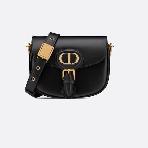 The Dior Bobby bag is a hobo style showcasing sophisticated lines and harmonious proportions. The black box calfskin style has a suede calfskin interior for a supple touch as well as antique gold-finish metal hardware. Featuring a removable and adjustable sliding shoulder strap with a military-inspired buckle, the small Dior Bobby bag can be carried by hand, worn over the shoulder or crossbody.