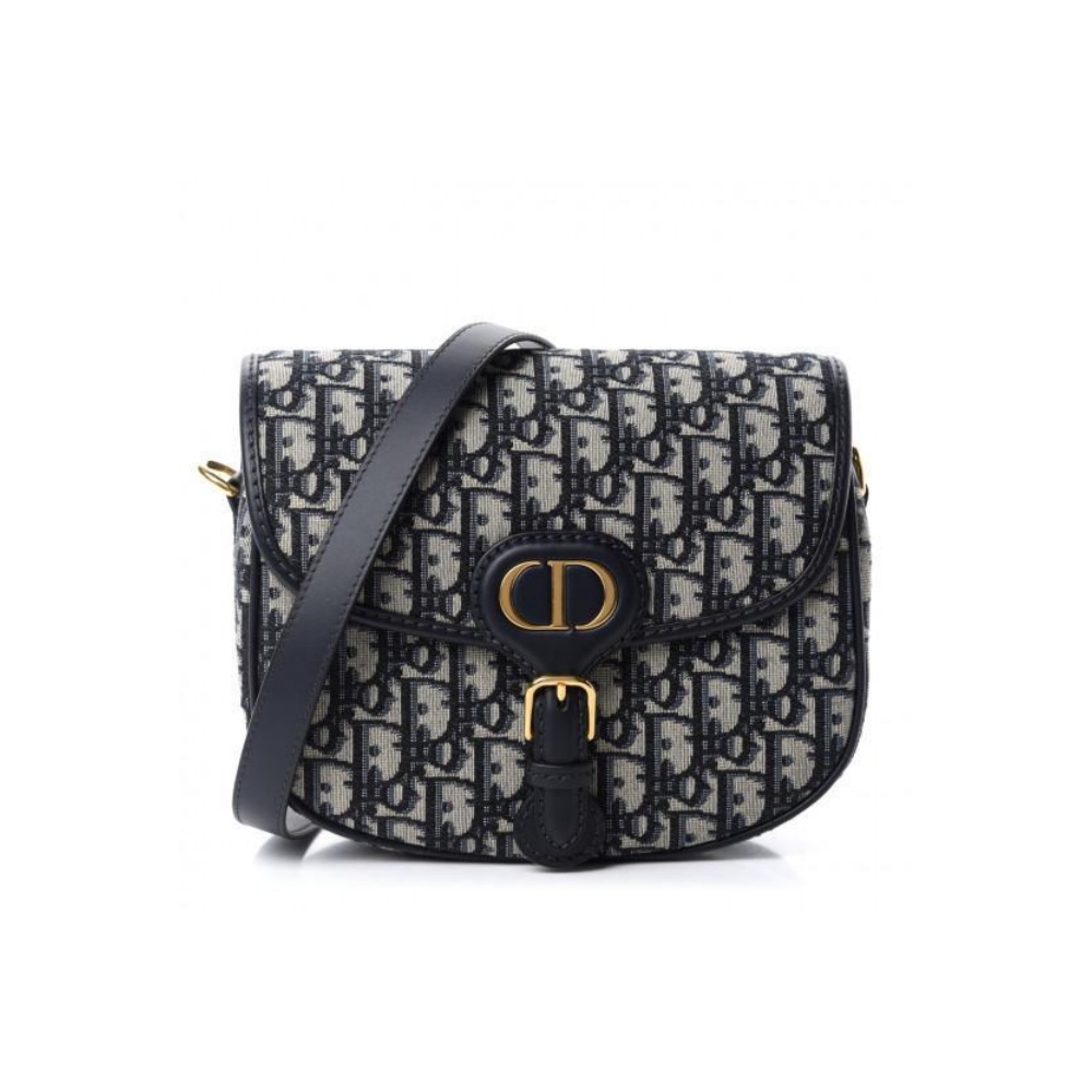 The Dior Bobby bag is a hobo style showcasing sophisticated lines and harmonious proportions. The model is crafted from blue Dior Oblique jacquard and is enhanced by antique gold-finish metal hardware