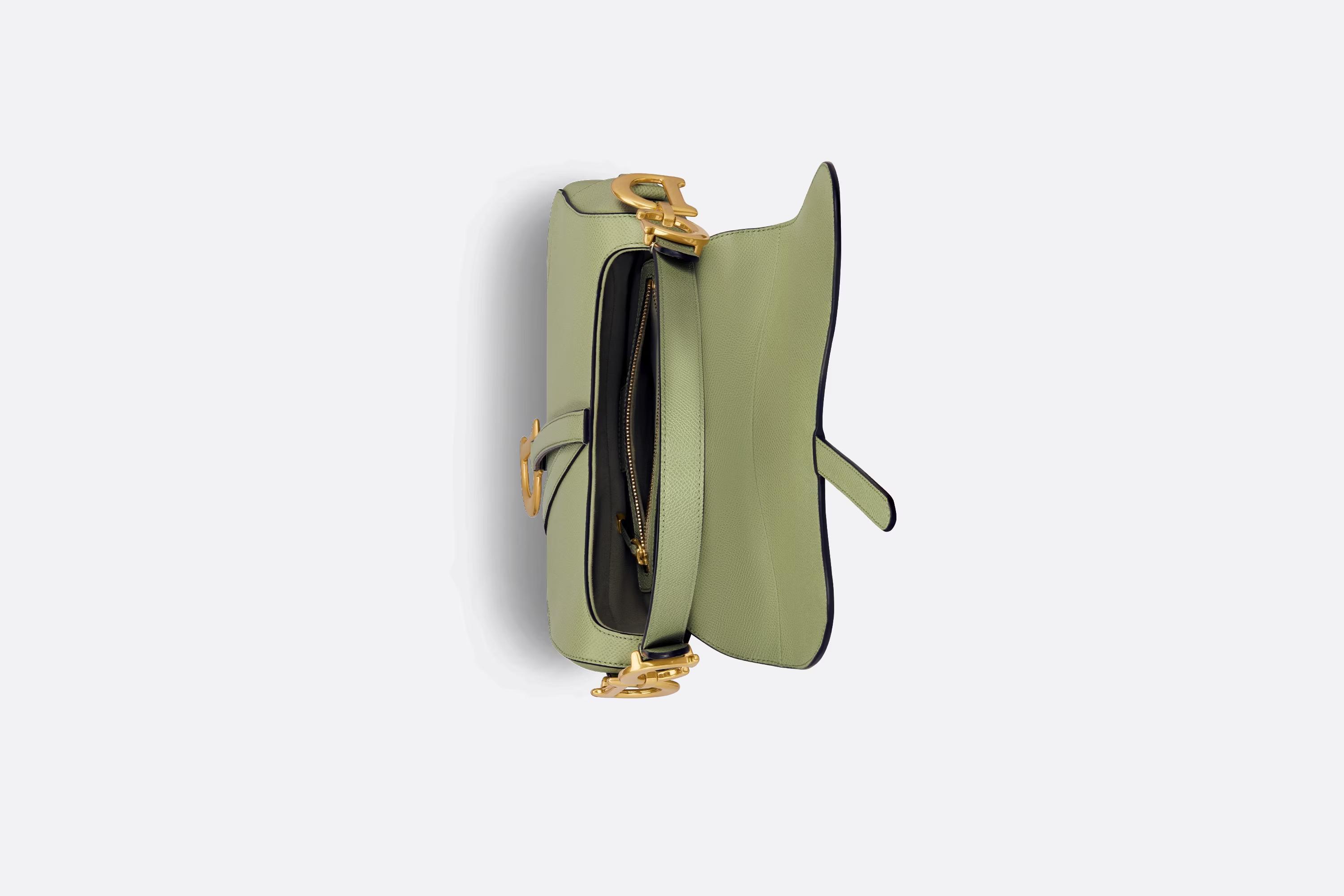Maria Grazia Chiuri brings a fresh update to the iconic Saddle bag. Crafted in black grained calfskin, the legendary design features a Saddle flap with a D stirrup clasp on a magnetic strap, as well as an antique gold-finish metal CD signature on either side of the strap. Equipped with a thin, adjustable and removable shoulder strap, the Saddle bag may be carried by hand, worn over the shoulder or crossbody.
