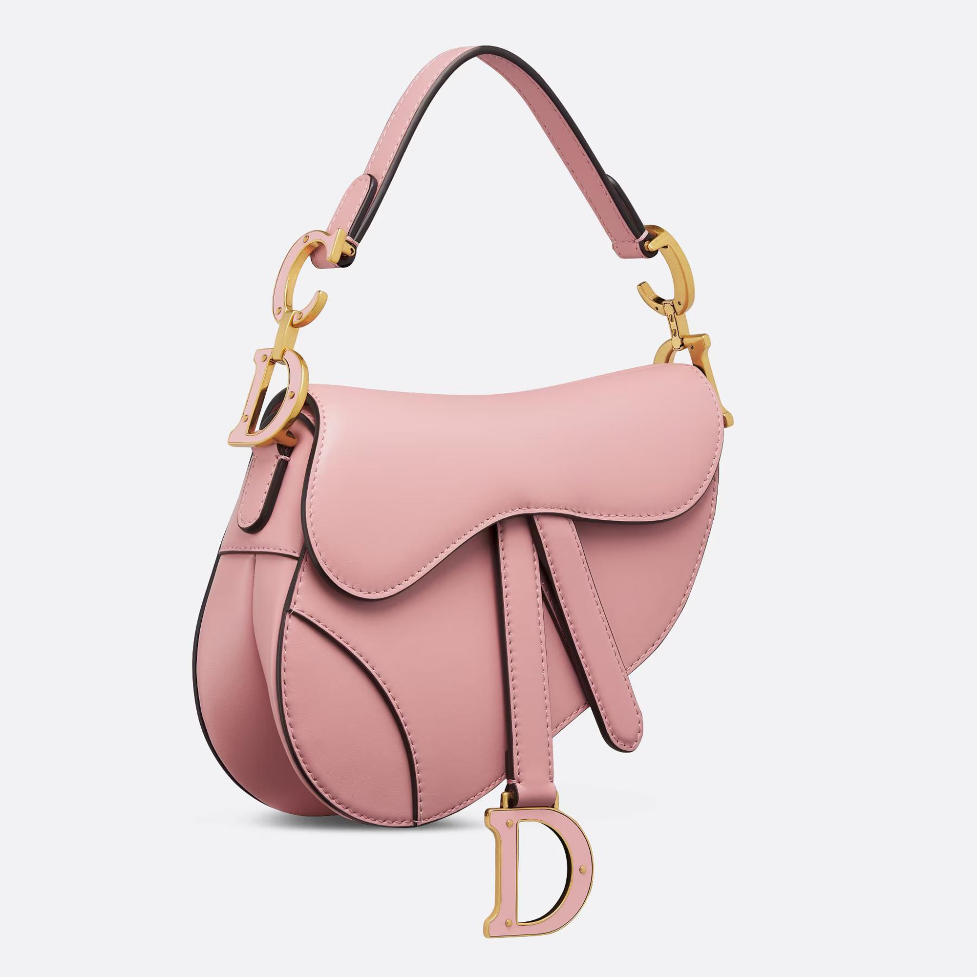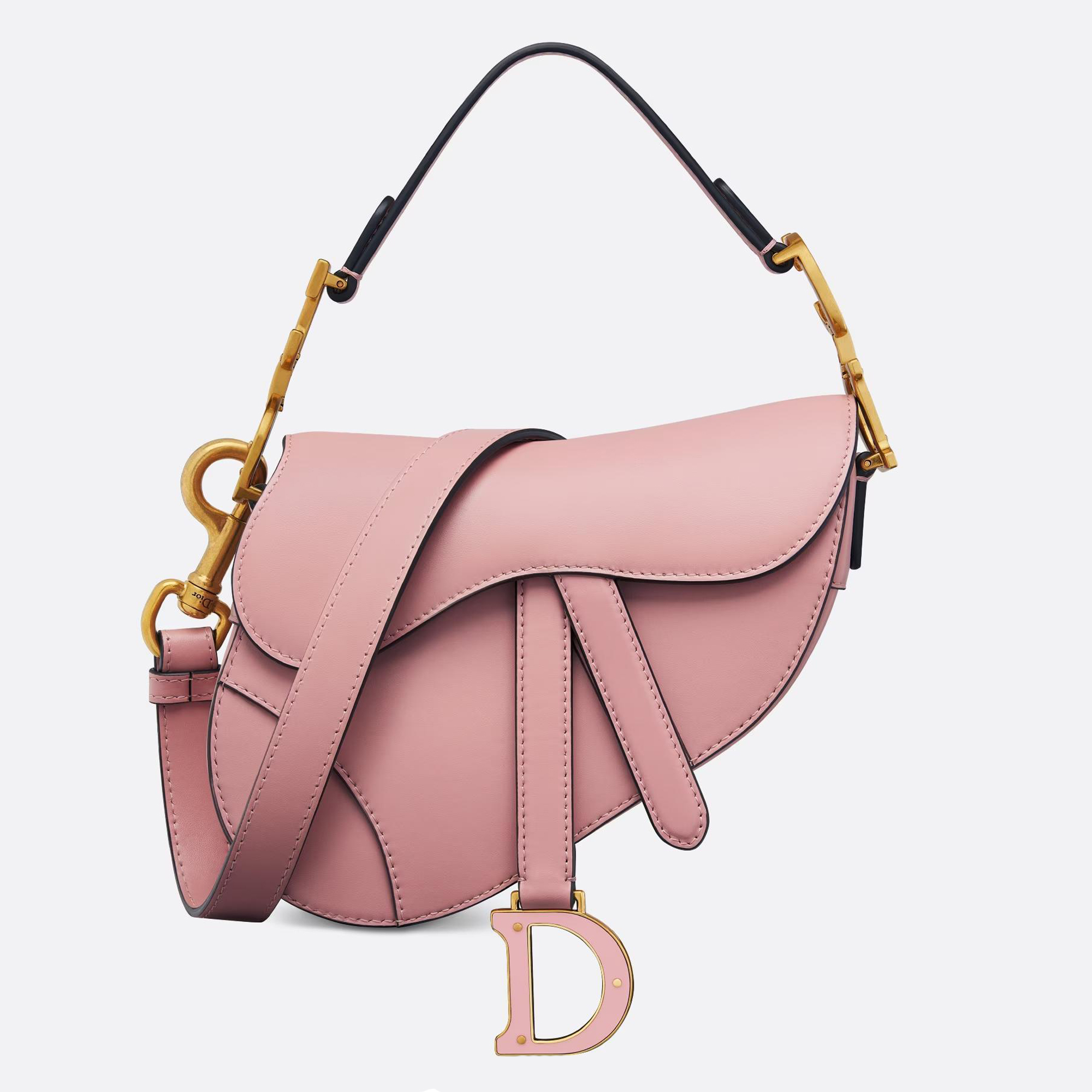 Maria Grazia Chiuri brings a fresh update to the iconic Saddle bag. Crafted in antique pink smooth calfskin with an ultra-soft touch, the legendary design features a Saddle flap with a D stirrup clasp on a magnetic strap with pulls, as well as an antique gold-finish metal CD signature on either side of the strap.